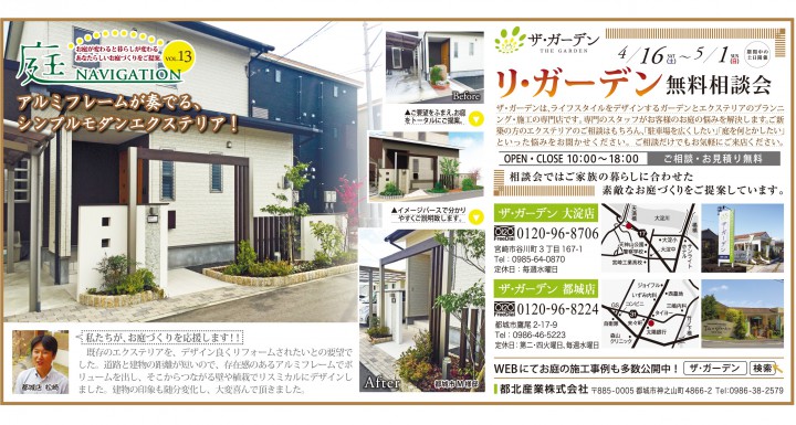 大淀店・都城店では、4月16日(土)~5月1日(日)までリ・ガーデン相談会を開催致します。