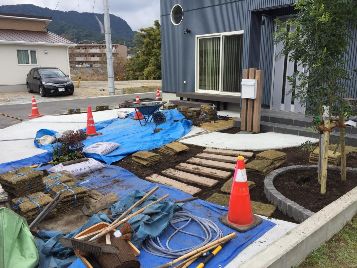 最後に植栽、芝を植えて完成になります。
