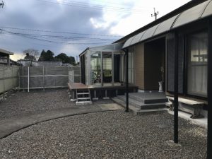 タイルテラス前に屋根を新設。