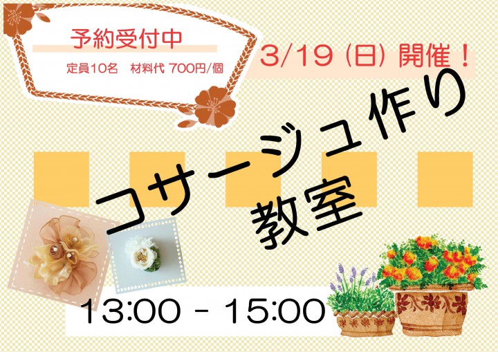 春の行事や、お出かけ、記念写真時に、胸元を飾る 可愛いコサージュを、あなただけのオンリーワンで作りませんか!