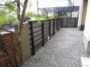木目の樹脂フェンスに変えました。外部からの目線はしっかりと隠せました。