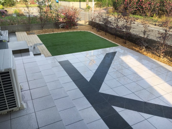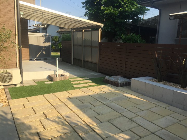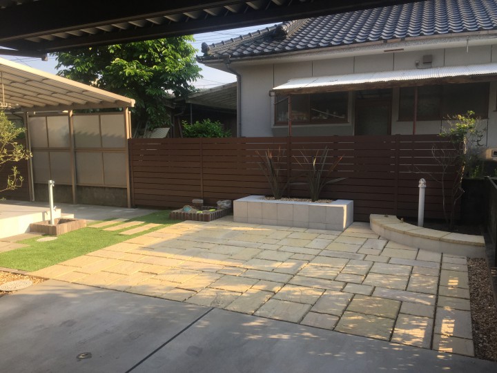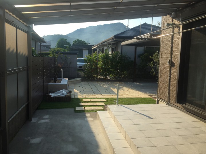 タイルテラスを作り屋根を全て境界まで伸ばして広々と選択ができるように変身