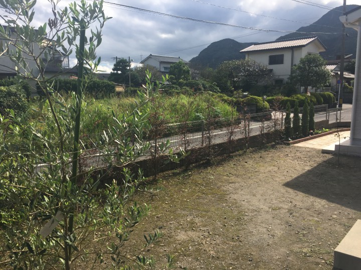 将来はブロック際に目隠しフェンスとリビング前にはシェード、or屋根テラスが取り付けれる