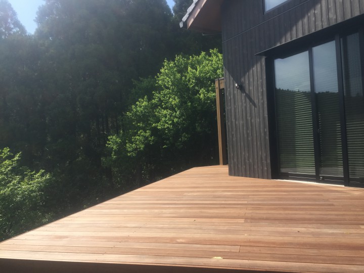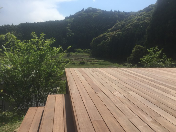 素材にこだわりウリン材を使用しております、とても広いデッキで眺めも最高です!!