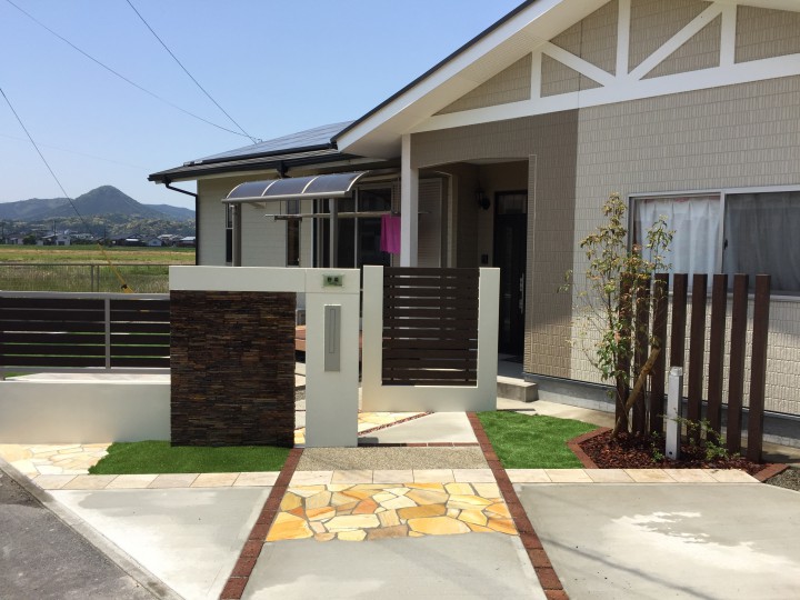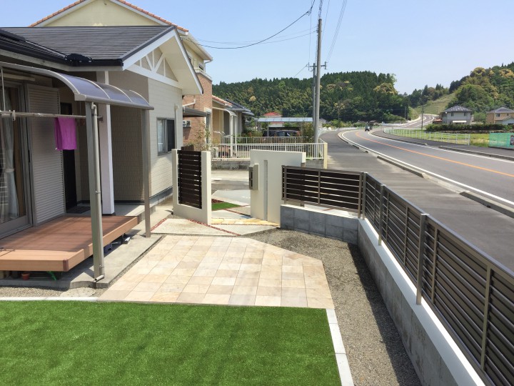 お庭にはタイルテラス、人工芝で使いやすく変わりました。