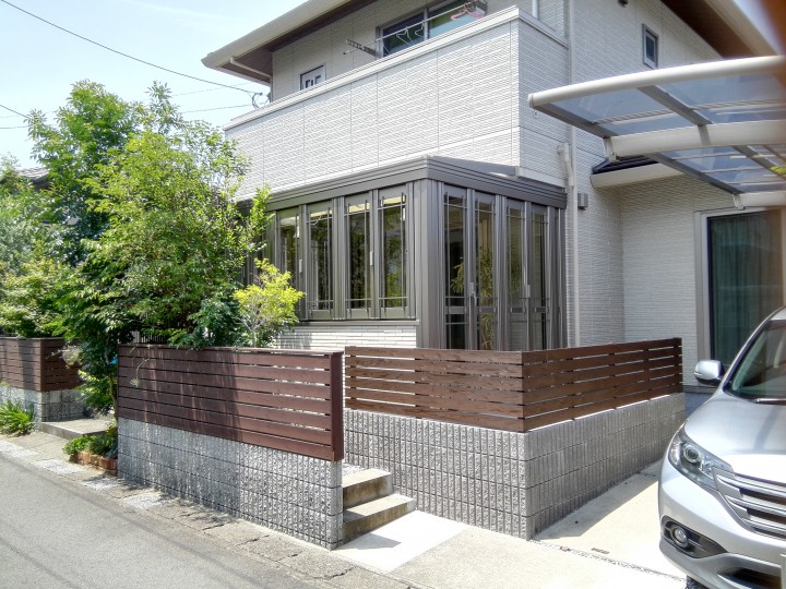 アプローチ横なのでお客様の視線と、これからの日差しと雨が・・・、そこで