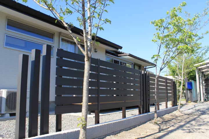 サンルーム・デッキ側は、樹脂フェンスと格子材にて空間を仕切りました。