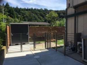 アルミ鋳物フェンスや目隠し樹脂フェンスを取り付け、ワンちゃんが脱走しないように