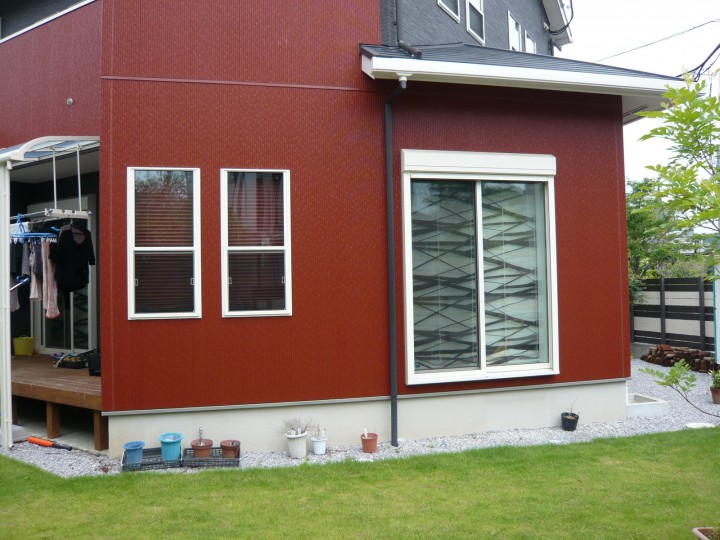 色合いに合わせました。雨樋も移動させてすっきりと収まっております。