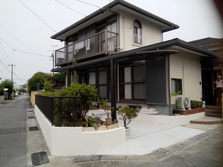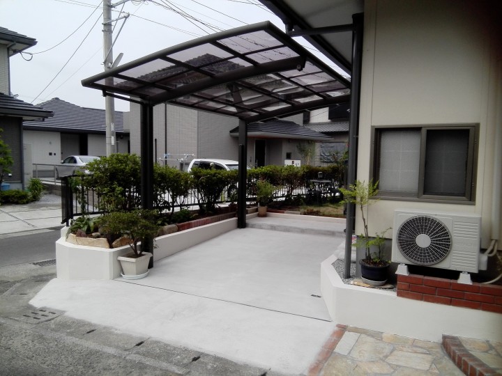 出入口と奥行を広げて駐車スペースを確保して、勾配も緩やかにしました