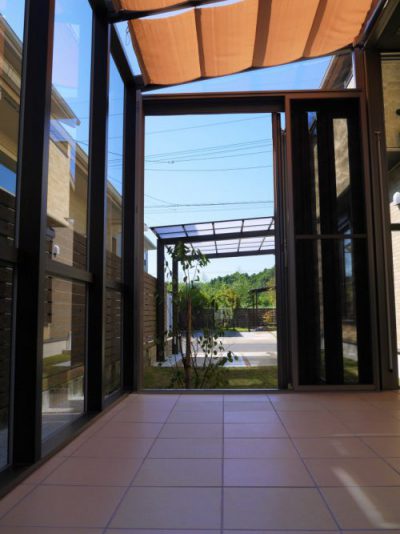 ルーム室内の印象も!上部に日除けを設けると日差しの強い日でも安心です。