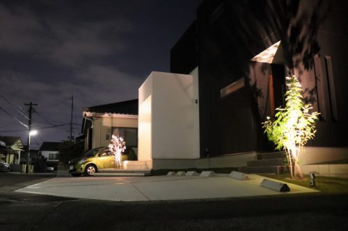ご敷地の端にそれぞれ植栽を設け、全体の統一感を計ると共に広がりのある空間づくりを心掛けました。