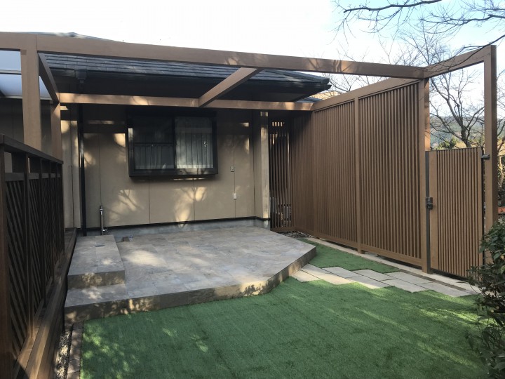 もともとフェンスがありましたので、開放的になりすぎないように注意して、