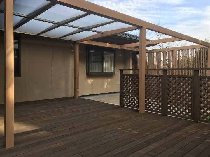 デッキ上に屋根を付けたいとのご要望でしたが、少し閉塞感があったので