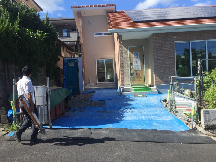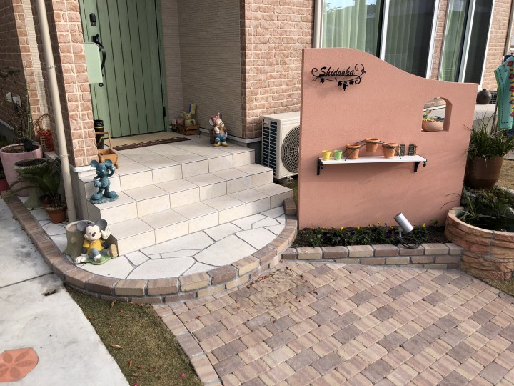 階段には白い乱形石を使い、明るい雰囲気になりました。
