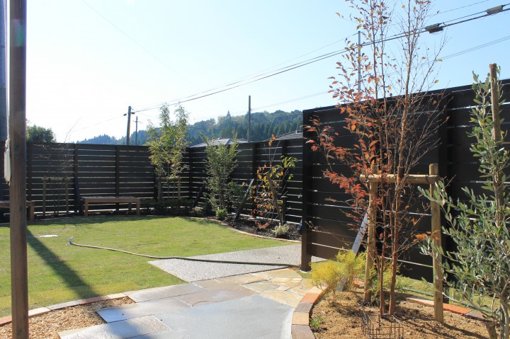フェンスに囲まれると、安心感だけでなく、空間が引き立ち、お庭が広く見えます。