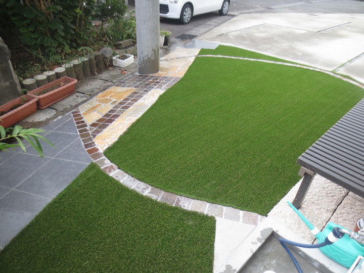 お庭はそんなに広くないので、緑を多く入れられたいとのことでしたので、人工芝が、引き立ちました。