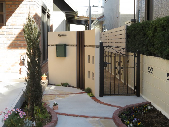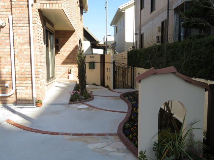 レンガや曲線・アイアンを使ってのプランです。