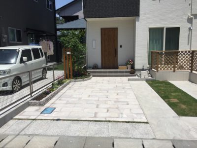 歩きやすさと広がりを演出。芝や樹の緑も一層引き立つ明るい雰囲気に生まれ変わりました。