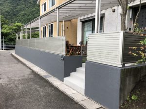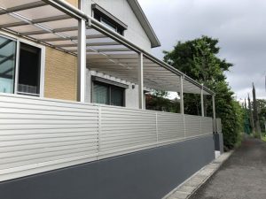日差しが強いお庭には日よけ、雨避けで大きなテラスを取り付けました。