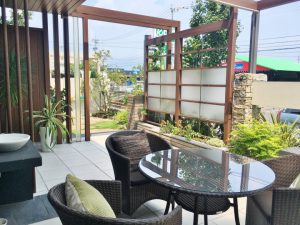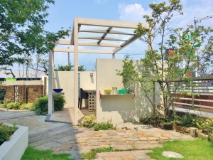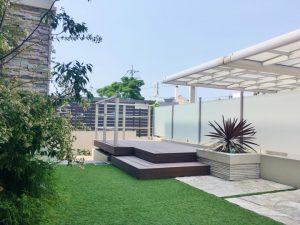 さて、右を振り返ると人工芝と、木目調が美しい樹脂デッキ♫