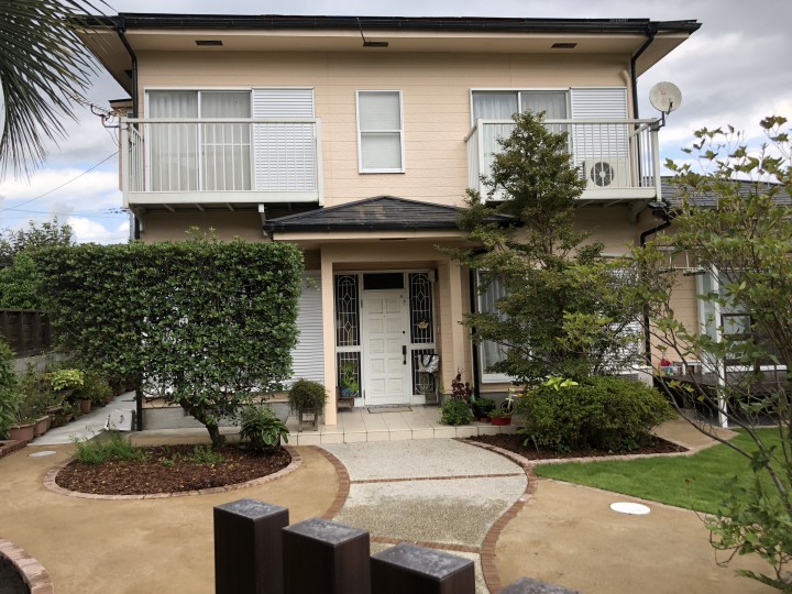 コンクリートのアプローチは長い年月で黒ずんでしまい全体的に暗い印象でした。