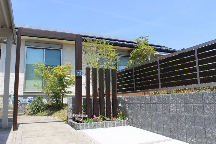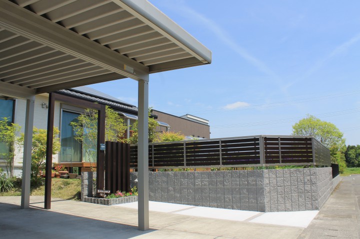 ブロックの上に目隠しフェンスを設け、プライバシーも確保しました。