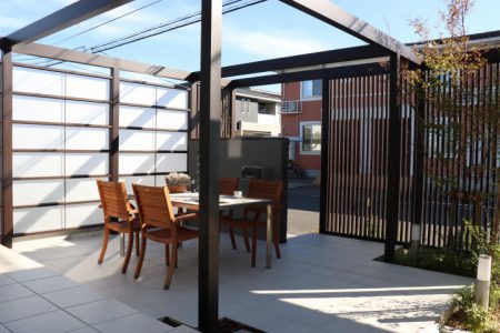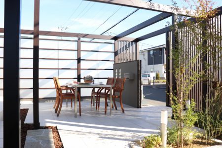 ご新築にあたり「ご家族やご友人の方と、一緒にくつろぐ事の出来るガーデンスペースが欲しい」とのT様。
