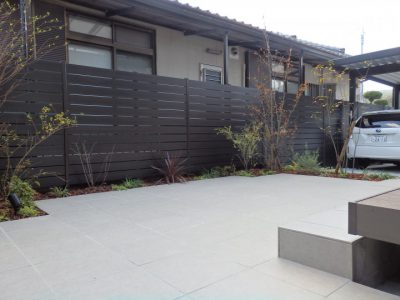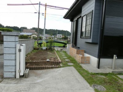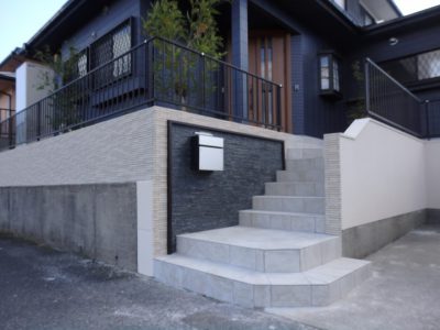 手前の擁壁をカットし、玄関ポーチの1段目・2段目を広げ、