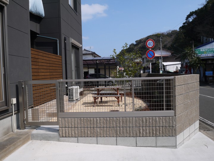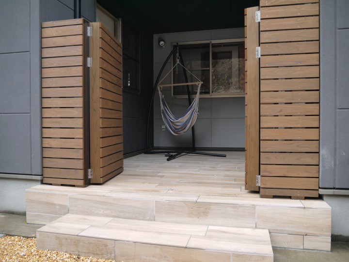 乱雑としていた中庭もタイルテラスで土間を上げ目隠しをつけました。