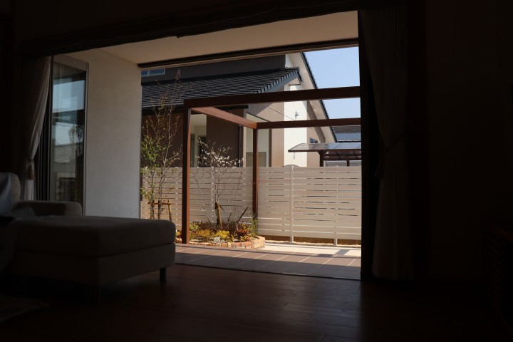植栽もポイントごとに配置し、心地良い木漏れ日が降り注ぐアウタールームが完成致しました。