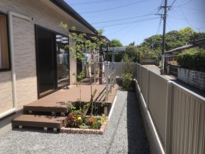 なりました。庭には洗濯物をパッとできるよう樹脂デッキと屋根テラスを設置。