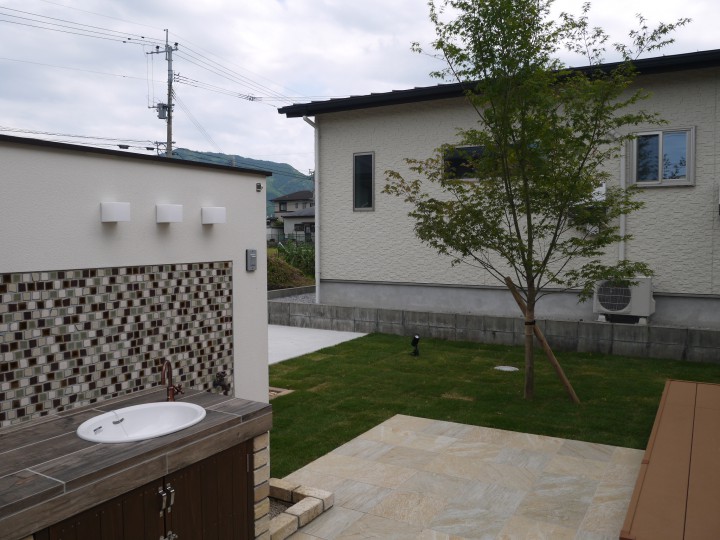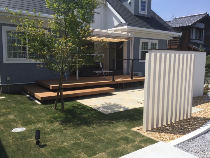 新築時には、駐車場のコンクリートとアプローチ、樹脂デッキだけで済ませ