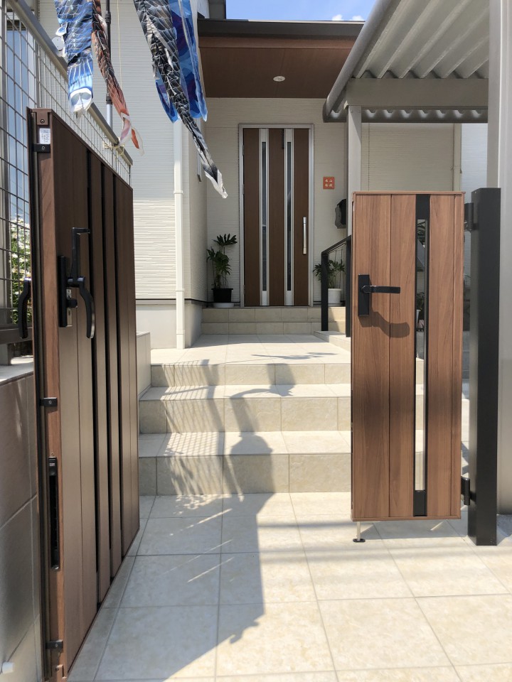 外回りは通りがおおい為子供たちが飛び出さないように門扉を付け、