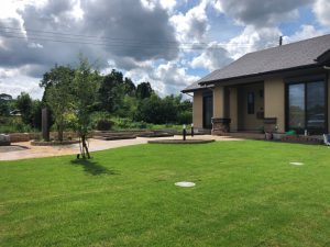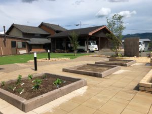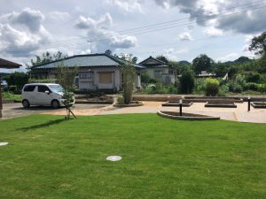 雑草対策と、広く綺麗な芝生と菜園のあるお庭の完成です。