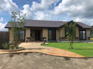 広い芝生と奥様がお好きなお花を植えれる花壇を作り