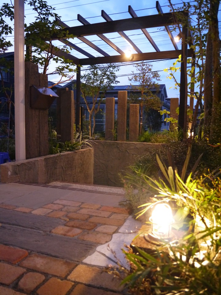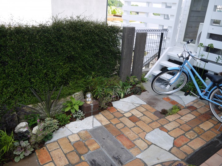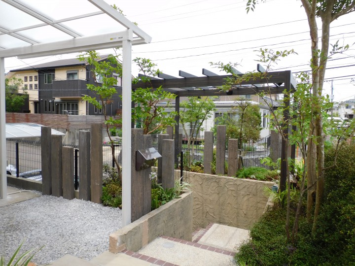 ナチュラルな感じがお好みでしたので、目隠しも擬石枕木を使って