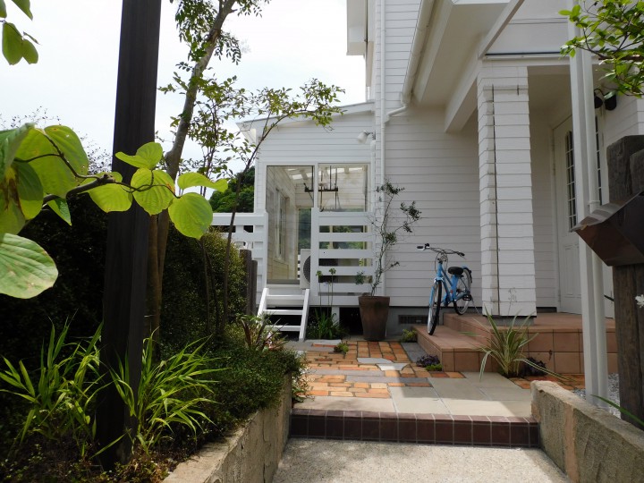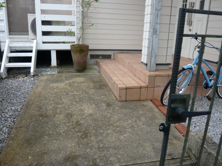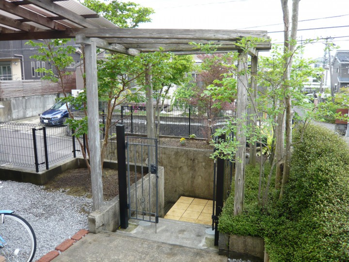 古くなった木製テラスやパーゴラを撤去し、アルミ製の物に取替えました。