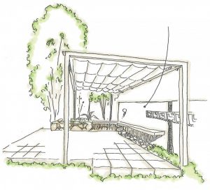 そこで軒をつけてあげて下を固め、そこにベンチでも付けてあげれば、憩い・くつろぎの場所へ変貌致します。