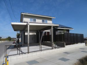 風に強い折半カーポートの梁を目いっぱい出して使い易くしました
