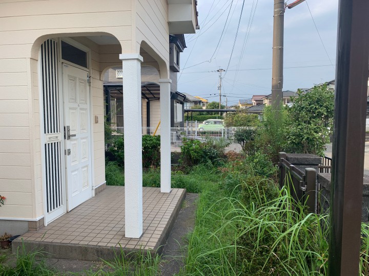 雑草と植栽がいっぱいでなかなか手付かずの状態です、