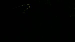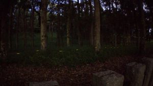 こちらは、ゲンジボタルという種類で呼吸するように点滅するので、写真に収めようとすると光の軌跡が線上に映ります。
