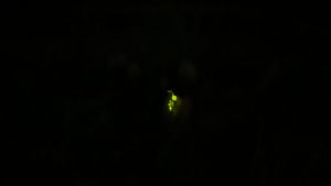 こちらは、ヒメボタルとういう種類でチカチカと点滅し、写真には点状に映ります。個人的には、白く発光してて明るさもゲンジボタル比べ明るく感じます。