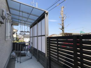 洗濯物干しスペースも欲しいとのご要望もあり、東側にも屋根を掛けました。