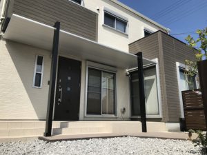 玄関前から掃き出し窓にかけて、屋根を掛けました。