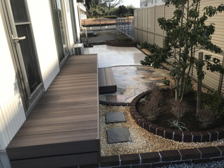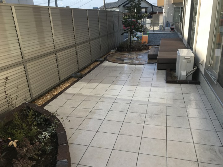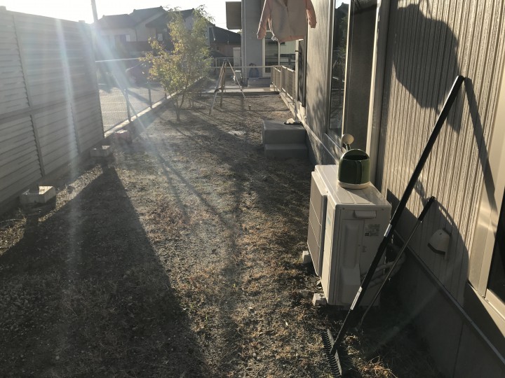 新築で引っ越して1年、そろそろお庭を作りたいとの事でご依頼頂きました、管理があまりいらず小さな娘さん