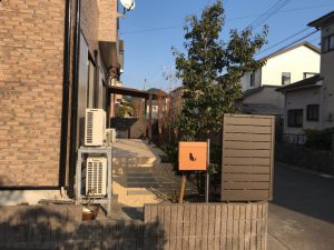 広々タイルテラスを作りプライベート空間ができあがりました。