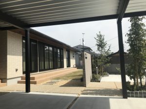 玄関の軒が長く出ている為カーポートから濡れずに玄関に入れます。
