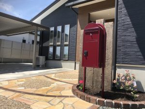 ポストはワインレッドよりも濃ゆいボルドー色です