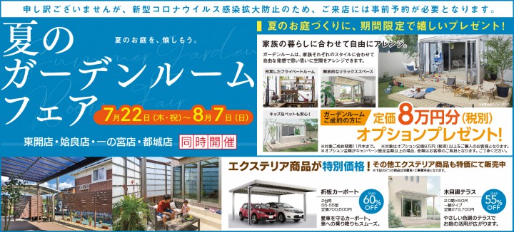 の期間にて、夏のガーデンルームフェアを開催しております。
